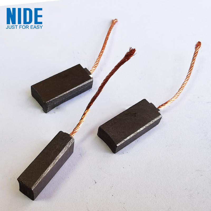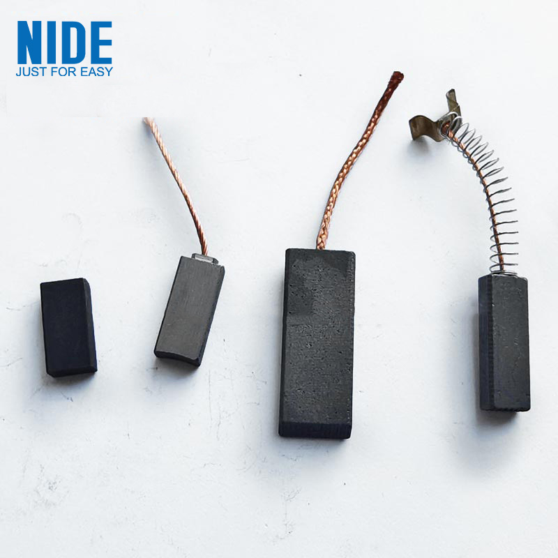 graphite ڪاربان برش بنيادي طور تي وڏي پيماني تي برقي پاور اوزار موٽر سامان ۾ استعمال ٿيندا آهن. اهي سگنل يا توانائي کي ڪجهه موٽرن يا جنريٽر جي مقرر ۽ گھمندڙ حصن ڏانهن منتقل ڪرڻ لاء استعمال ڪيا ويا آهن. شڪل مستطيل آهي، ۽ ڌاتو تار بهار ۾ نصب ٿيل آهي. ڪاربن برش هڪ قسم جو سلائيڊنگ رابطو آهي، تنهنڪري اهو پائڻ آسان آهي ۽ ان کي تبديل ڪرڻ ۽ باقاعده صاف ڪرڻ جي ضرورت آهي.